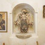The interior presents a series of pillars leaning against the wall that tripart the nave. In the last part there is the presbytery with a marble balustrade. The altar is decorated with elegant marble inlays, as can be seen from the medallion with cross in the centre of the frontal and from the volutes.