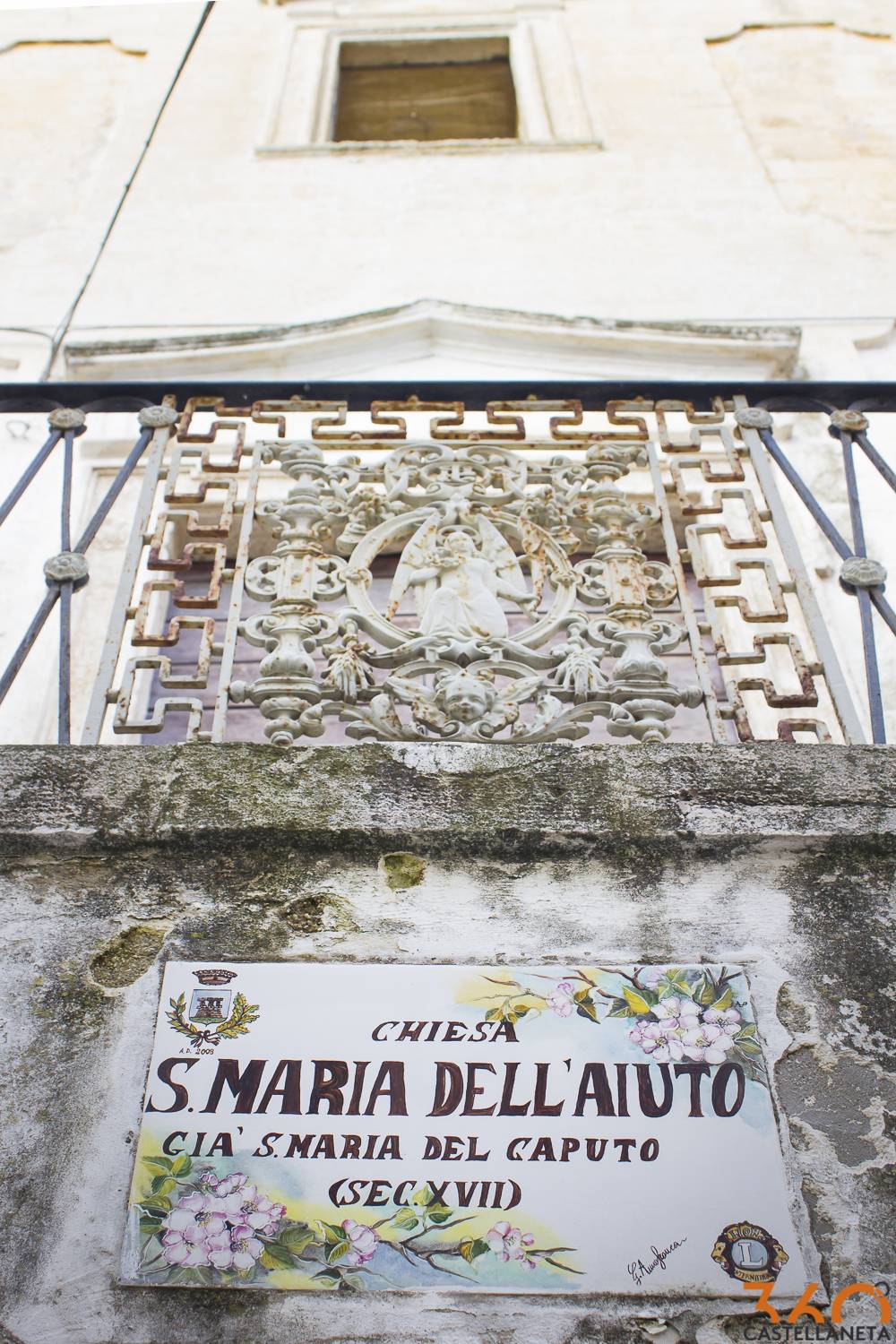 Very ancient, perhaps dating back to a period prior to the construction of the city walls, the first structure of the church called S. Maria de lo Caputo had an east-west orientation, perpendicular to the current one. In 1732, the existing nave was enlarged and the pediment softened by two high lateral volutes was added. The church is at a higher level than the road, to which the parvis is connected by a symmetrical double staircase. In 1621, the Reverend Fathers Gabriello and Marcello Maria Mastrillo of the Society of Jesus founded here the Congregation of the Blessed Virgin with the name of Our Lady of Aid.