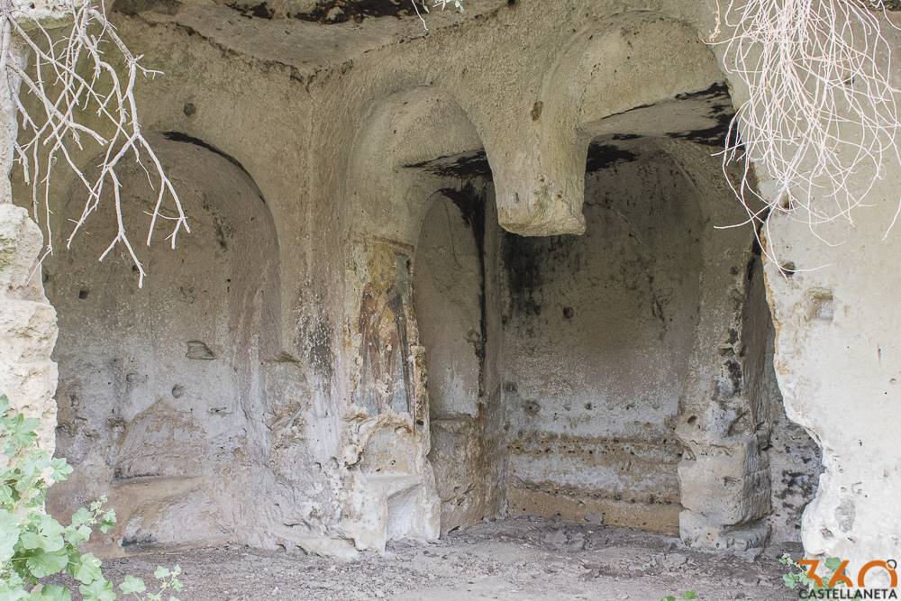 È ubicata nella gravina di Santo Stefano, a circa 3 chilometri da Castellaneta, anticamente costeggiata per un tratto dalla Via Appia. L’escavazione della cripta, le cui prime tracce si trovano in un documento del 1258, dovrebbe risalire all’anno Mille e s’inserisce in un insediamento di notevoli proporzioni sviluppato su più piani e nel tempo modificato per usi non abitativi. Vi si accede tramite un’ampia scalinata che inizia sul ciglio della gravina in prossimità di una masseria. L’ingresso è molto ampio a causa dello sfondamento di una parete.