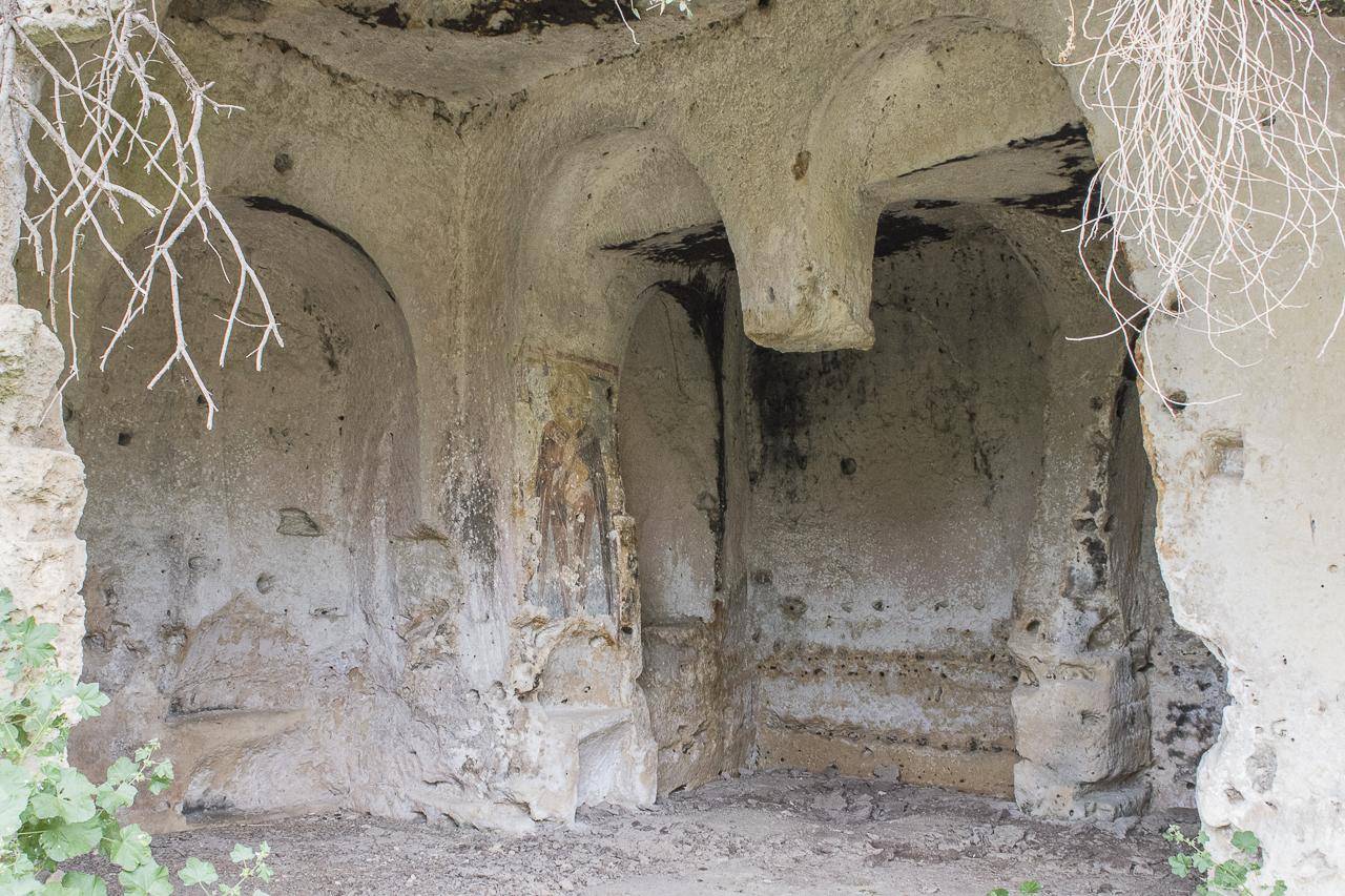 Le grotte che compongono l’insediamento sono disposte su almeno tre livelli, riutilizzate di recente come ricoveri per animali.